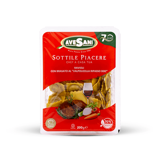 Fresh egg pasta filled with brasato and “Valpolicella ripasso DOC” wine