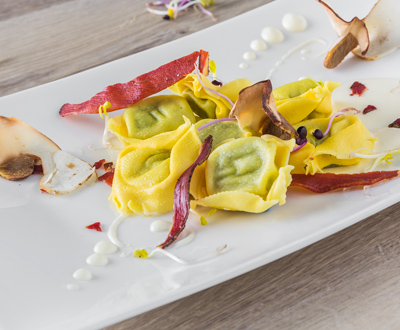 Melt the stracchino in a bain-marie. Place a glass dish over a saucepan full of hot water and turn from time to time for the stracchino to melt completely. Cut the speck into strips and keep aside. Pour the stracchino and speck in a pan and cook for two minutes. Do not add salt because the speck releases a lot of salt.